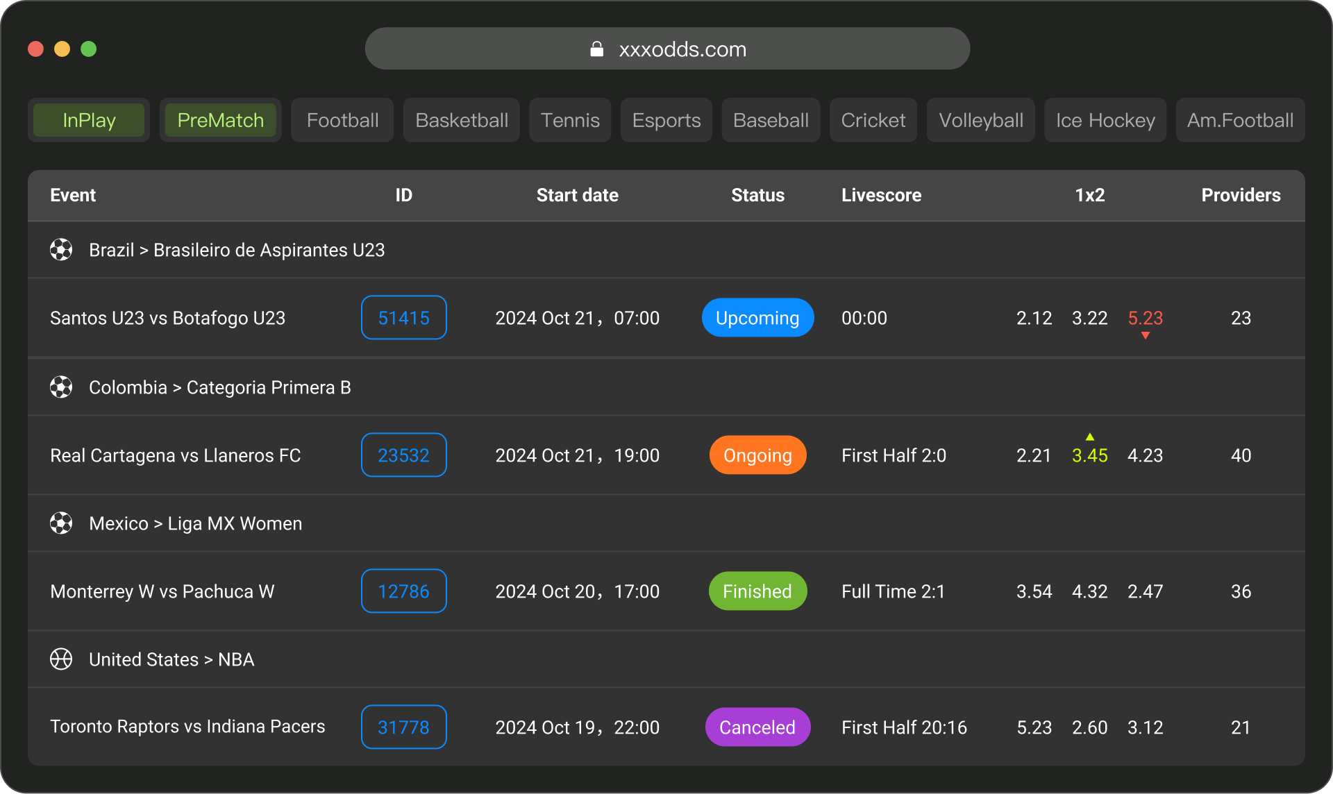 We continuously expand data coverage to meet the needs of customers. Provide easy access to the world’s sports odds data.